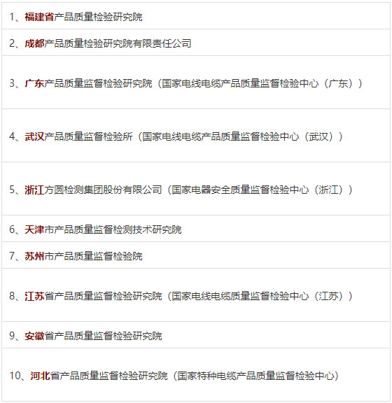 請電纜人牢記以下這10家中標電線電纜的檢驗檢測機構(gòu):