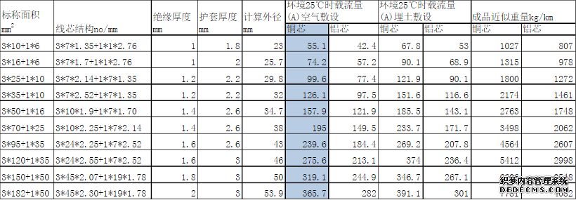 銅芯電纜載流量對照表如下: