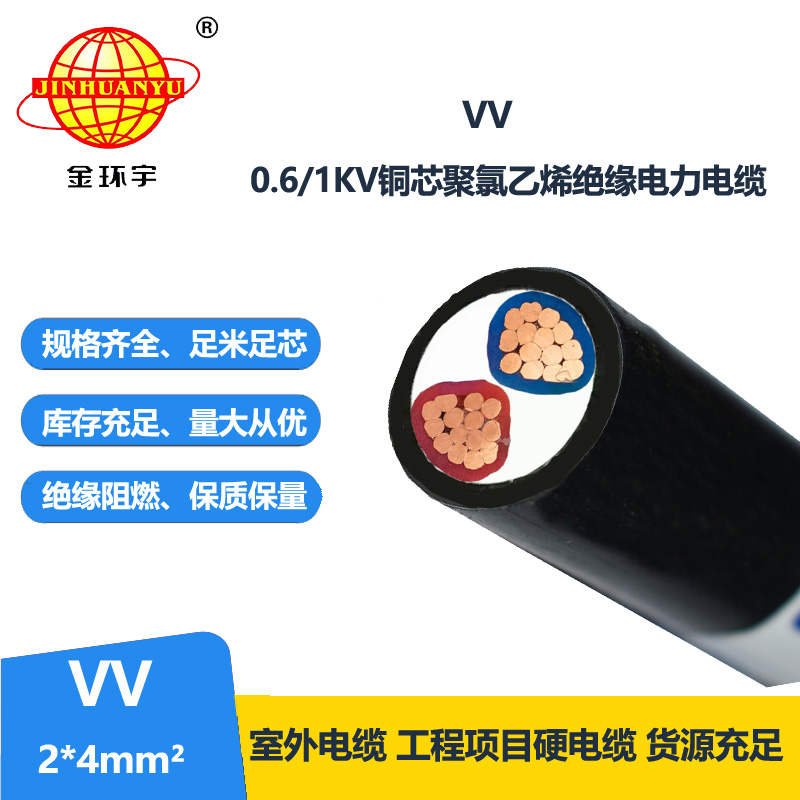 金環(huán)宇電纜 vv銅芯電纜 電力電纜VV 2*4平方