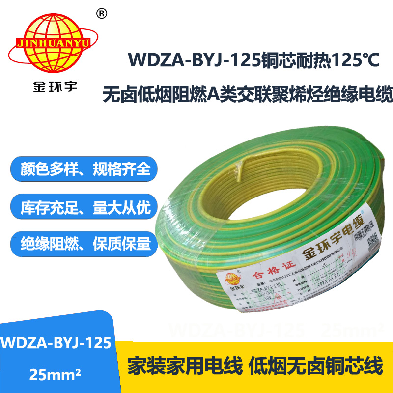 WDZA-BYJ-125全稱為耐熱125℃無鹵低煙阻燃A類交聯(lián)聚烯烴絕緣電纜;符合解釋說明:WDZ表示低煙無鹵阻燃;A代表A類阻燃;B代表布電線;YJ表示交聯(lián)聚乙烯;