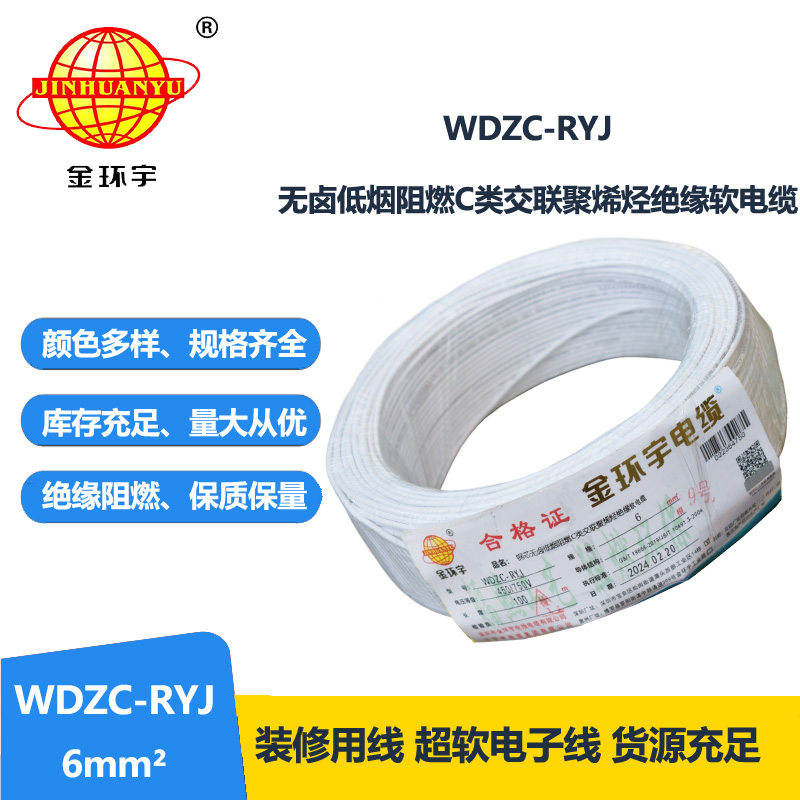 金環(huán)宇電線 WDZC-RYJ 6平方 低煙無鹵阻燃c類電線rv