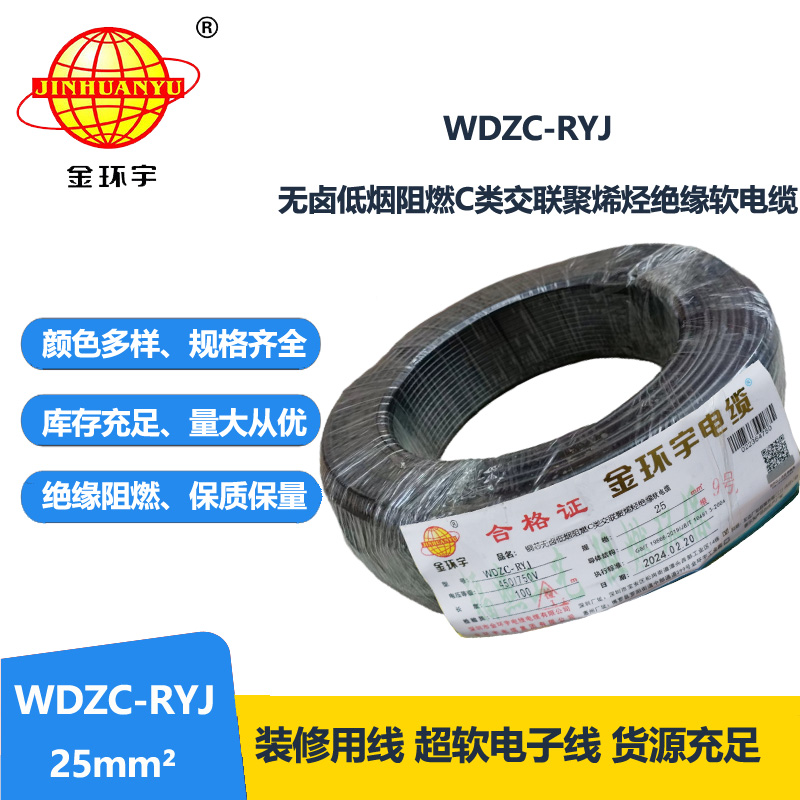 金環(huán)宇電線 rv電線報價 低煙無鹵阻燃電線WDZC-RYJ 25平方