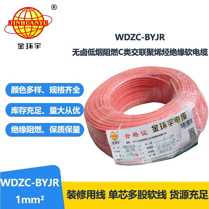 WDZC-BYJR指低煙無鹵阻燃聚烯烴護(hù)套,交聯(lián)聚乙烯絕緣軟電線。WDZC分別是無鹵、低煙、阻燃、聚烯烴,B指電線,YJ是交聯(lián)聚乙烯絕緣,R是軟。