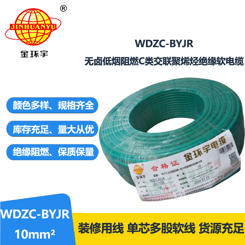 WDZC-BYJR指低煙無(wú)鹵阻燃聚烯烴護(hù)套,交聯(lián)聚乙烯絕緣軟電線。WDZC分別是無(wú)鹵、低煙、阻燃、聚烯烴,B指電線,YJ是交聯(lián)聚乙烯絕緣,R是軟。
