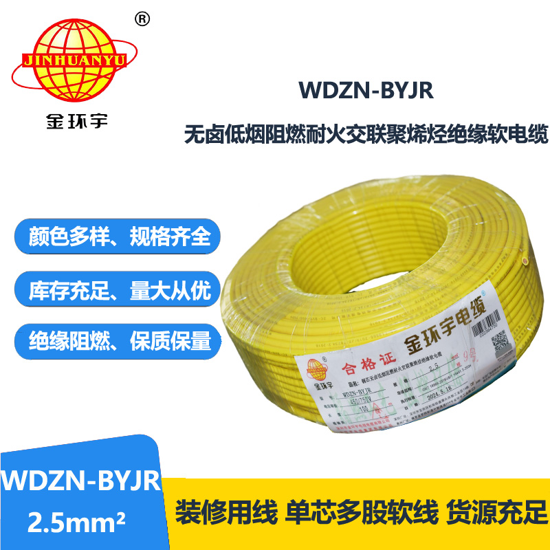 WDZN-BYJR指低煙無鹵阻燃耐火聚烯烴護套,交聯聚乙烯絕緣軟電線。WDZN分別是無鹵、低煙、阻燃、耐火、聚烯烴,B指電線,YJ是交聯聚乙烯絕緣,R是軟。