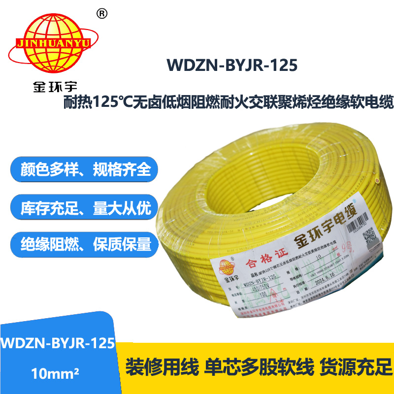 金環(huán)宇電線電纜 耐熱低煙無鹵阻燃耐火電線 10平方銅芯電線價格WDZN-BYJR-125
