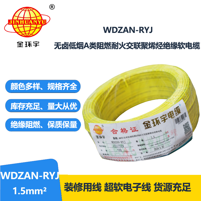 WDZAN-RYJ電纜:全稱A級阻燃耐火低煙無鹵交聯(lián)聚烯烴絕緣布電線,執(zhí)行標(biāo)準(zhǔn)GB/T19666-2005。