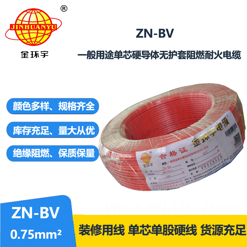 ZN-BV0.75平方就是導(dǎo)線截面為0.75平方毫米的銅芯聚氯乙烯絕緣阻燃電線,由一根銅線組成,多用于450/750V及以下動力裝置、日用電器、儀表用線及固定的埋設(shè)當(dāng)中。