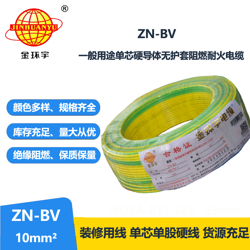 ZN-BV10平方就是導(dǎo)線截面為10平方毫米的銅芯聚氯乙烯絕緣阻燃電線,由一根銅線組成,多用于450/750V及以下動力裝置、日用電器、儀表用線及固定的埋設(shè)當(dāng)中。