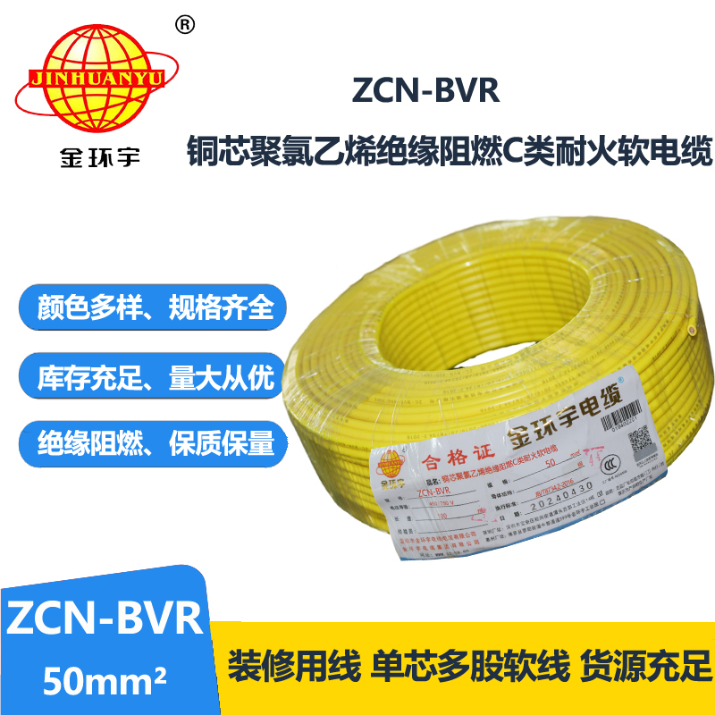 金環(huán)宇電線電纜 ZCN-BVR 50平方 c類阻燃耐火bvr軟心電線價(jià)格