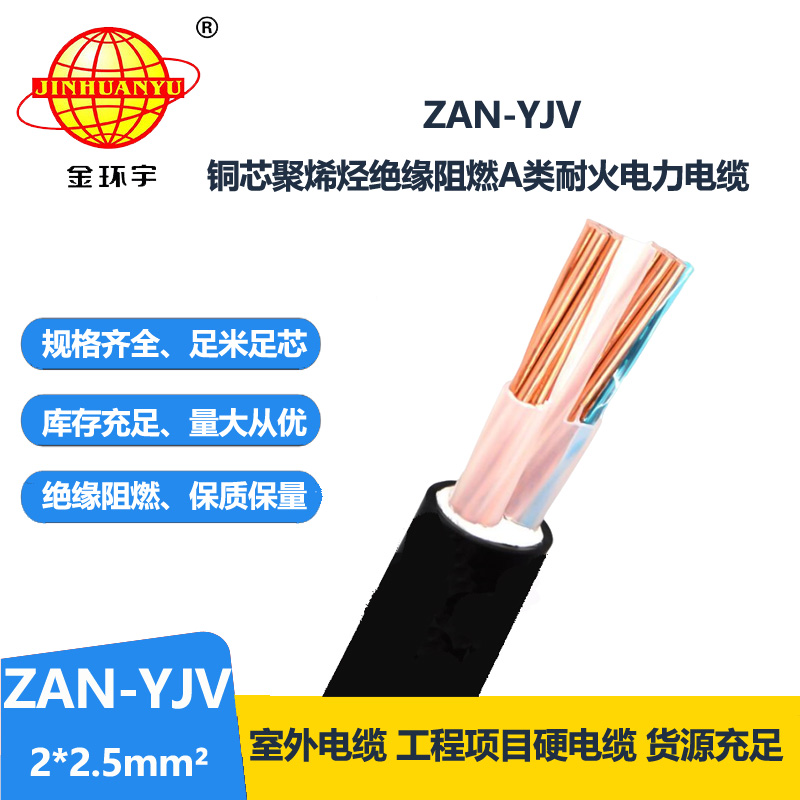 金環(huán)宇電線電纜 a級(jí)阻燃耐火電力電纜ZAN-YJV 2X2.5 交聯(lián)電纜yjv