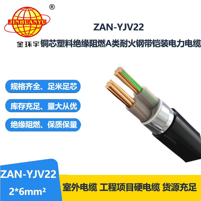 金環(huán)宇電線電纜 ZAN-YJV22-2X6平方 a級阻燃耐火鋼帶鎧裝電力電纜報價