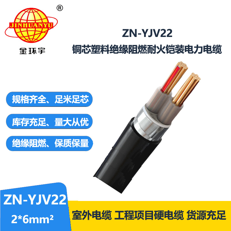 金環(huán)宇電纜 阻燃耐火電線電纜yjv22鎧裝電力電纜ZN-YJV22-2X6 足米