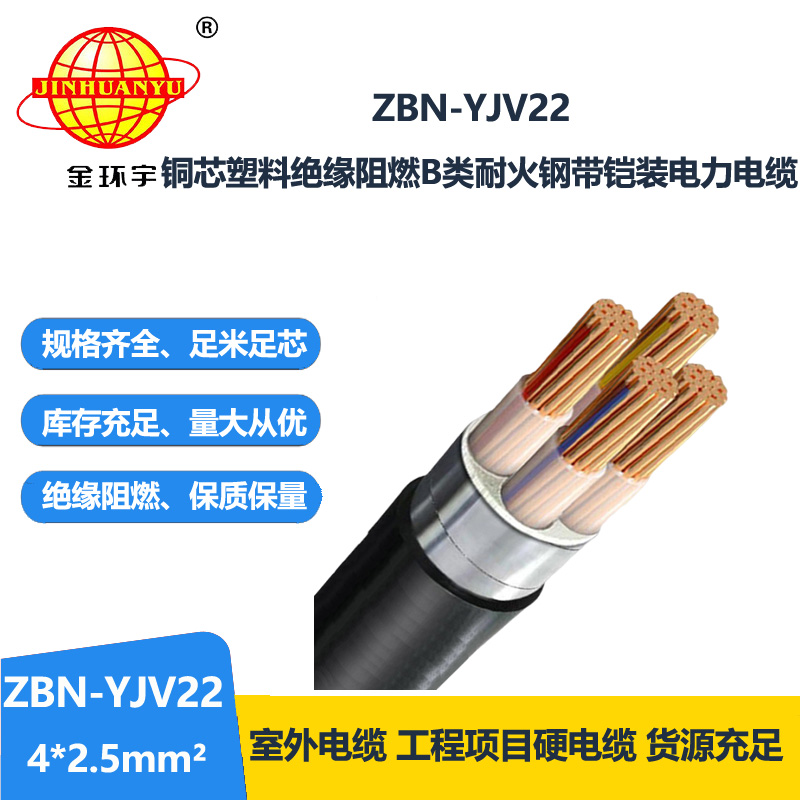 金環(huán)宇電線電纜 阻燃耐火電力電纜ZBN-YJV22-4X2.5平方銅芯鎧裝交聯(lián)電纜