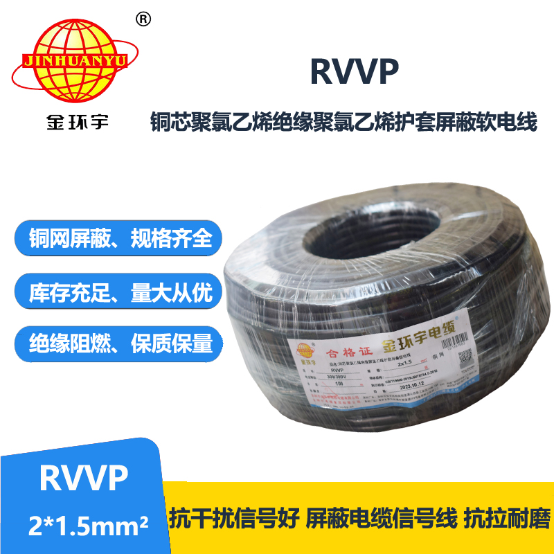RVVP 2×1.5平方電纜是2根1.5平方銅芯聚氯乙烯絕緣外加屏蔽和聚氯乙烯護套做成的抗干擾軟電纜。